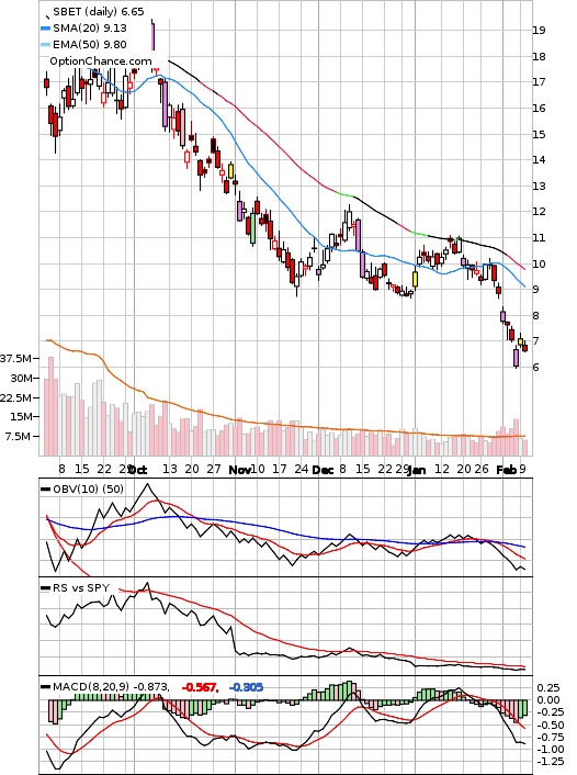 | SBET - SharpLink Gaming Ltd Ordinary Shares (Consumer Cyclical: Gambling) | Projected Earnings Date: 0000-02-29 (Delayed quote data 2026-02-10) |