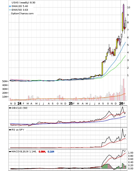 | USAS - Americas Silver Corp (Basic Materials: Silver) | Projected Earnings Date: 0000-02-29 (Delayed quote data 2026-02-10) |